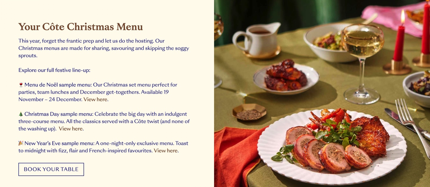 Côte Brasserie, located in East Street, brings a taste of France and relaxed brasserie-style dining to Horsham Market Town.