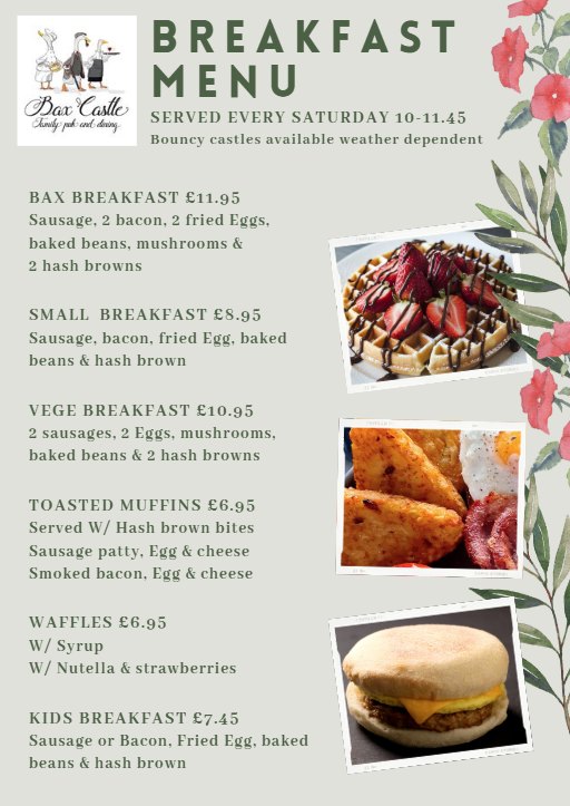 Breakfast every Saturday at The Bax Castle from 10:00am – 11:45am.