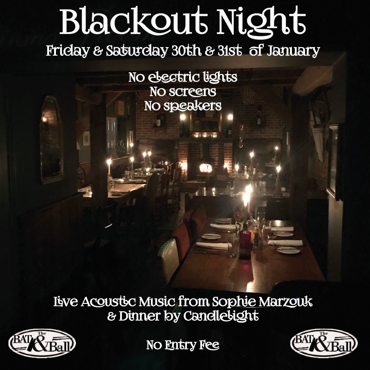 Friday & Saturday (30th & 31st of January) marks the return of the Bat & Ball Non Electricity 'Blackout Nights'