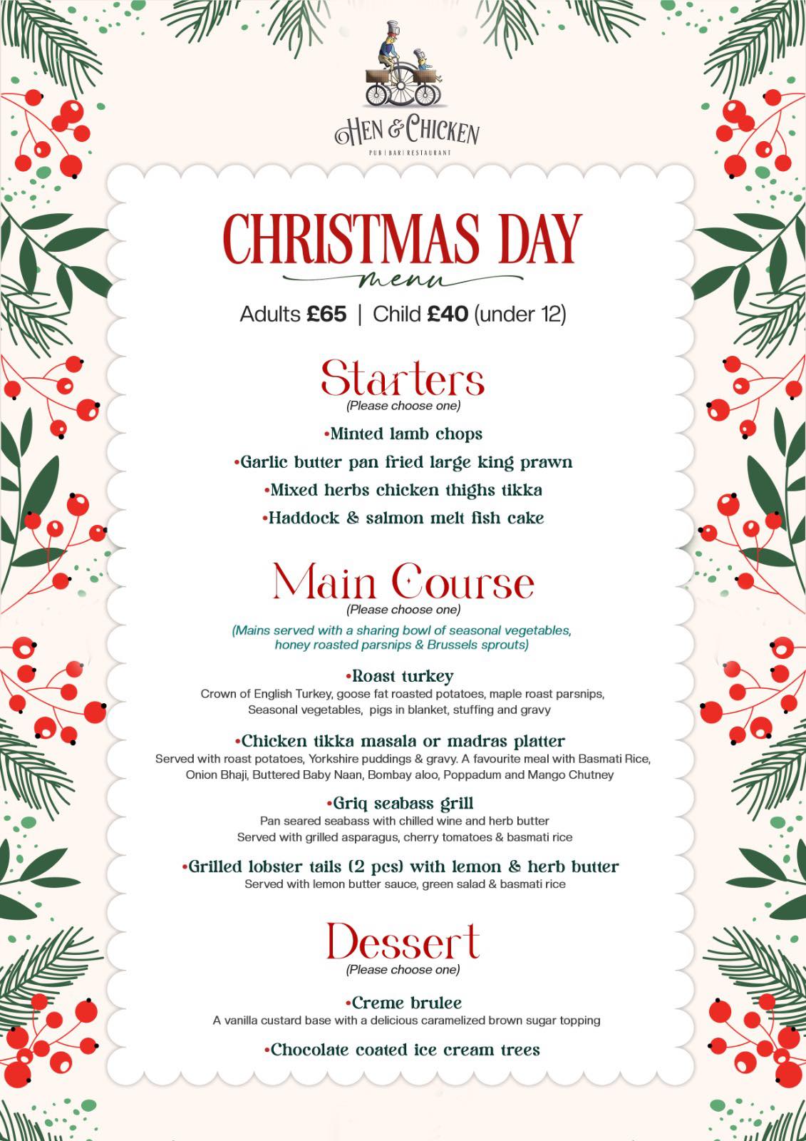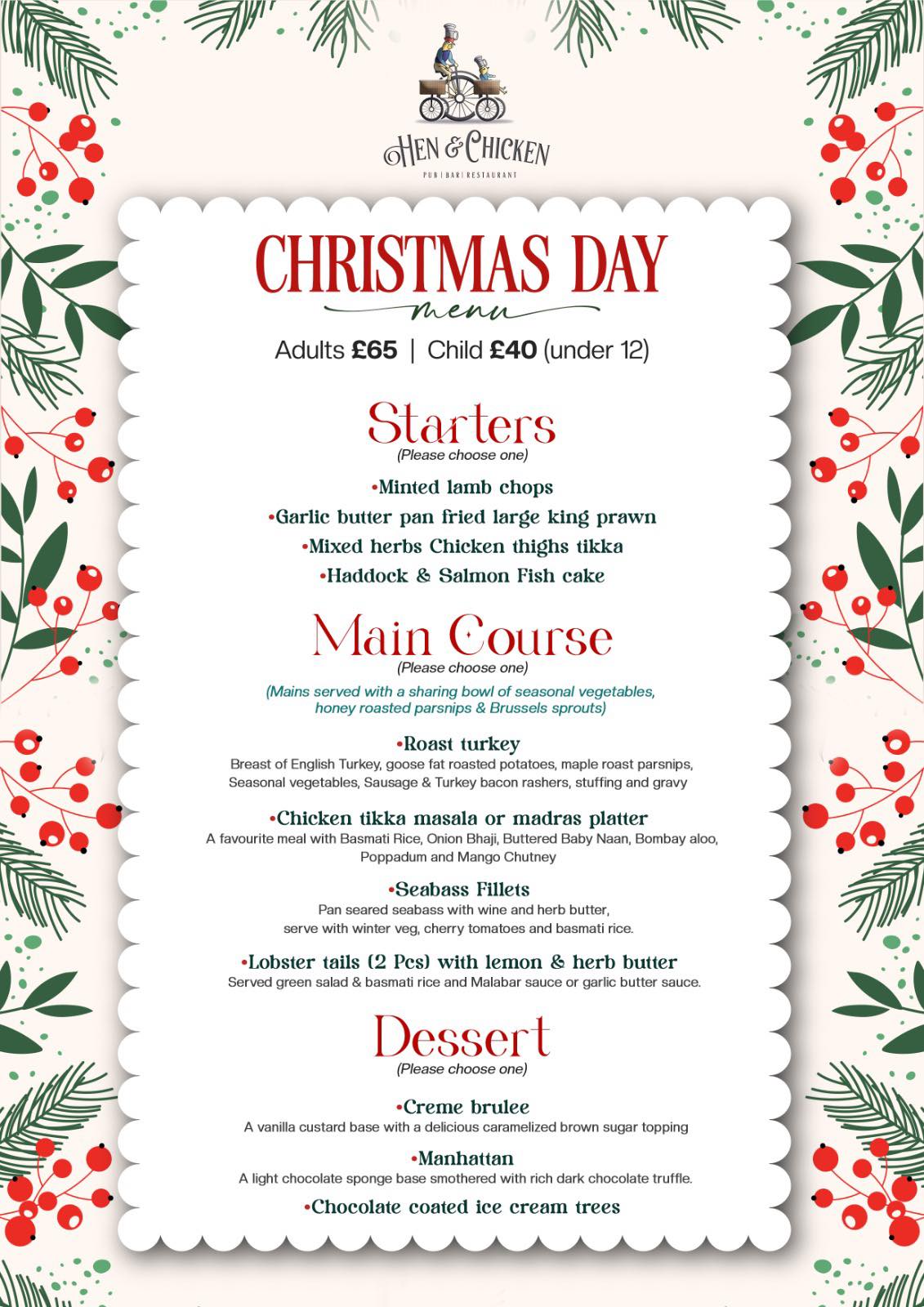 Join us at Hen & Chicken, Southwater for a joyful Christmas Day meal — filled with warmth, laughter, and festive favourites!