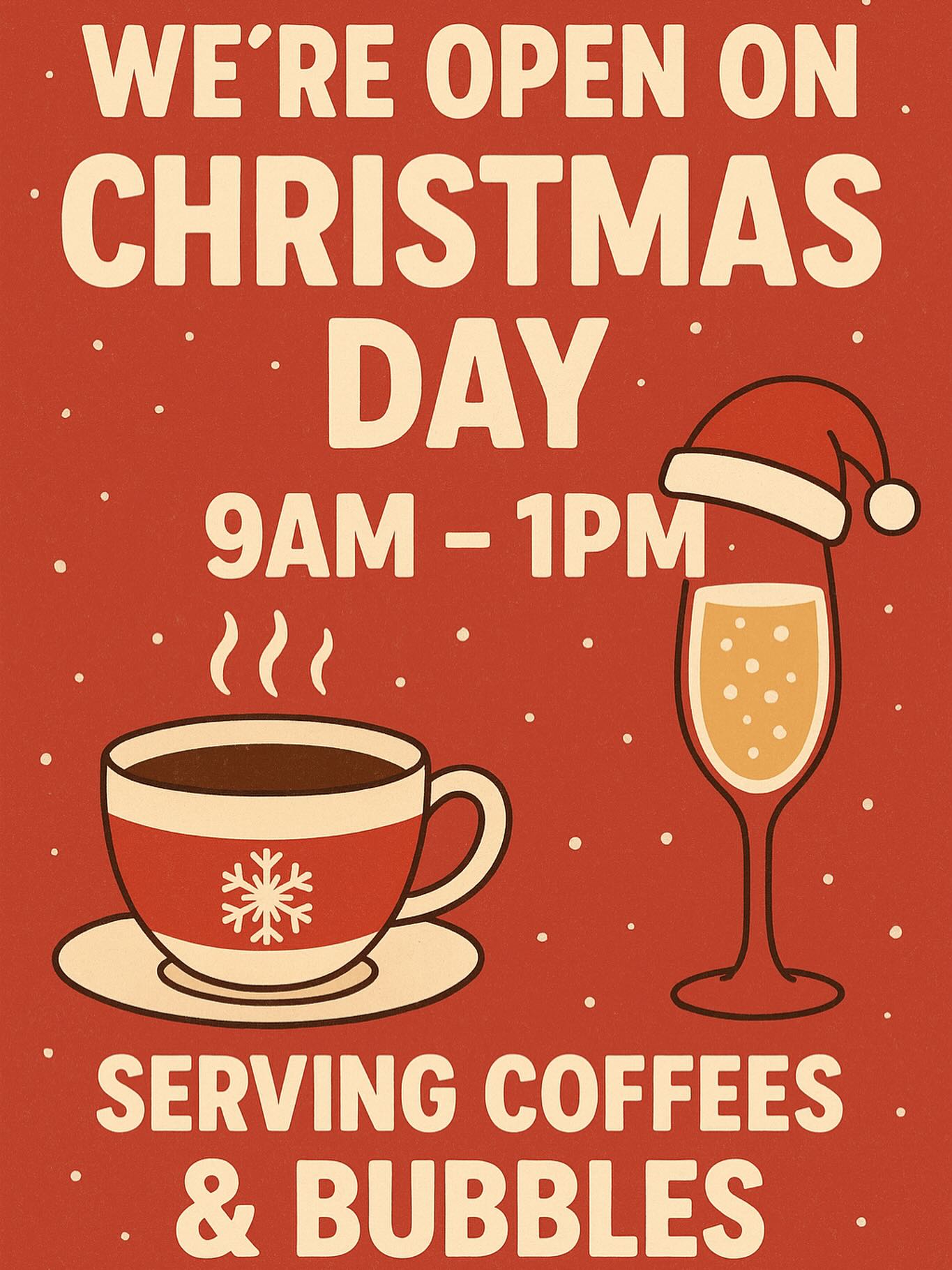 We’re spreading a little extra holiday cheer this year once again — we’ll be open on Christmas Day from 9am–1pm!