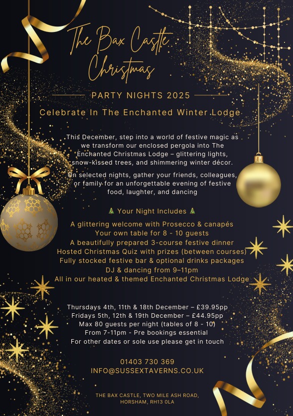 Send us a message or email us for all the information and to book info@sussextaverns.co.uk