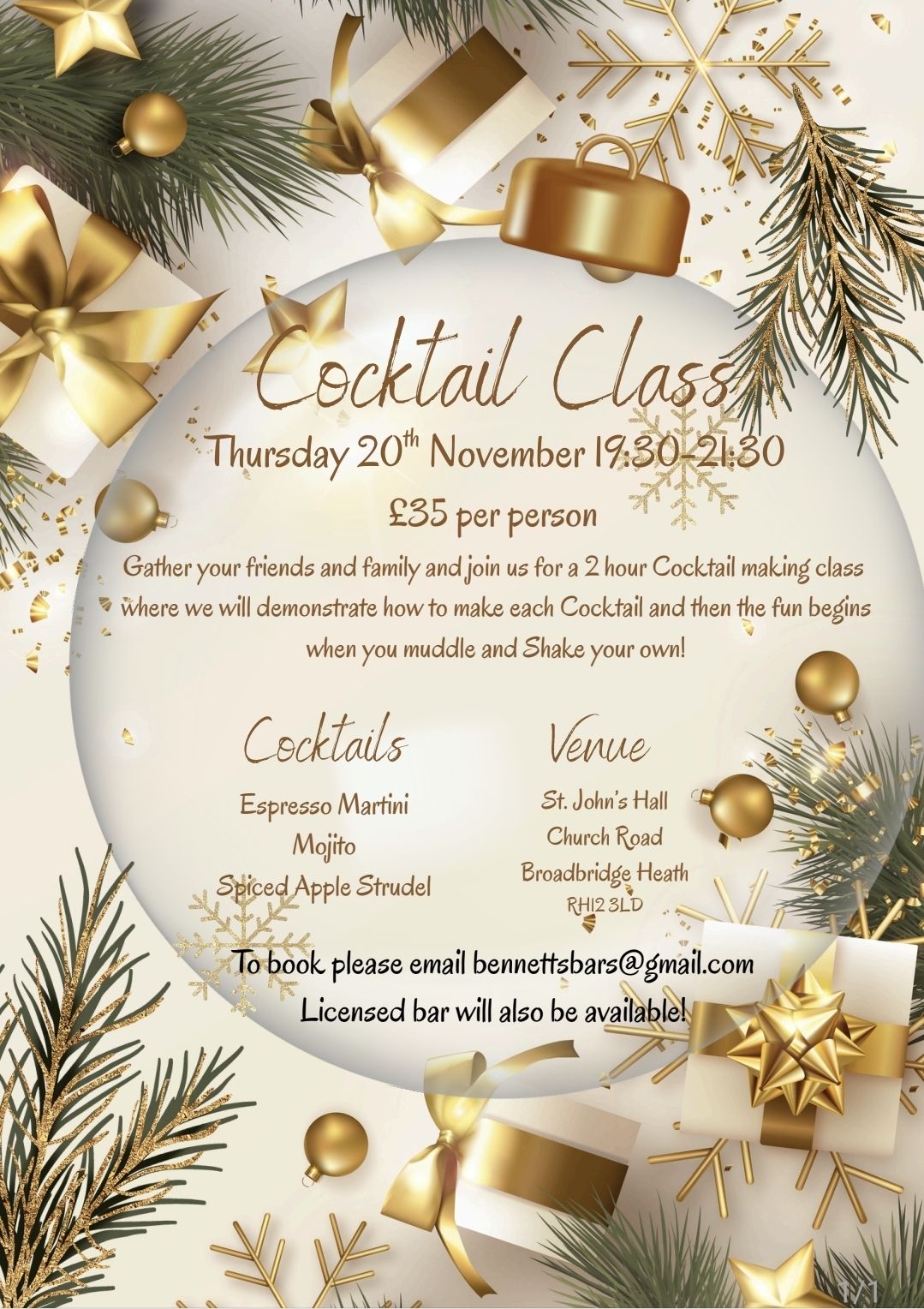 If you would like to secure a place please email bennettsbars@gmail.com