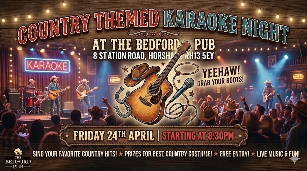 Join us for a Country themed party night with Karaoke at the Bedford on Friday 24th April.