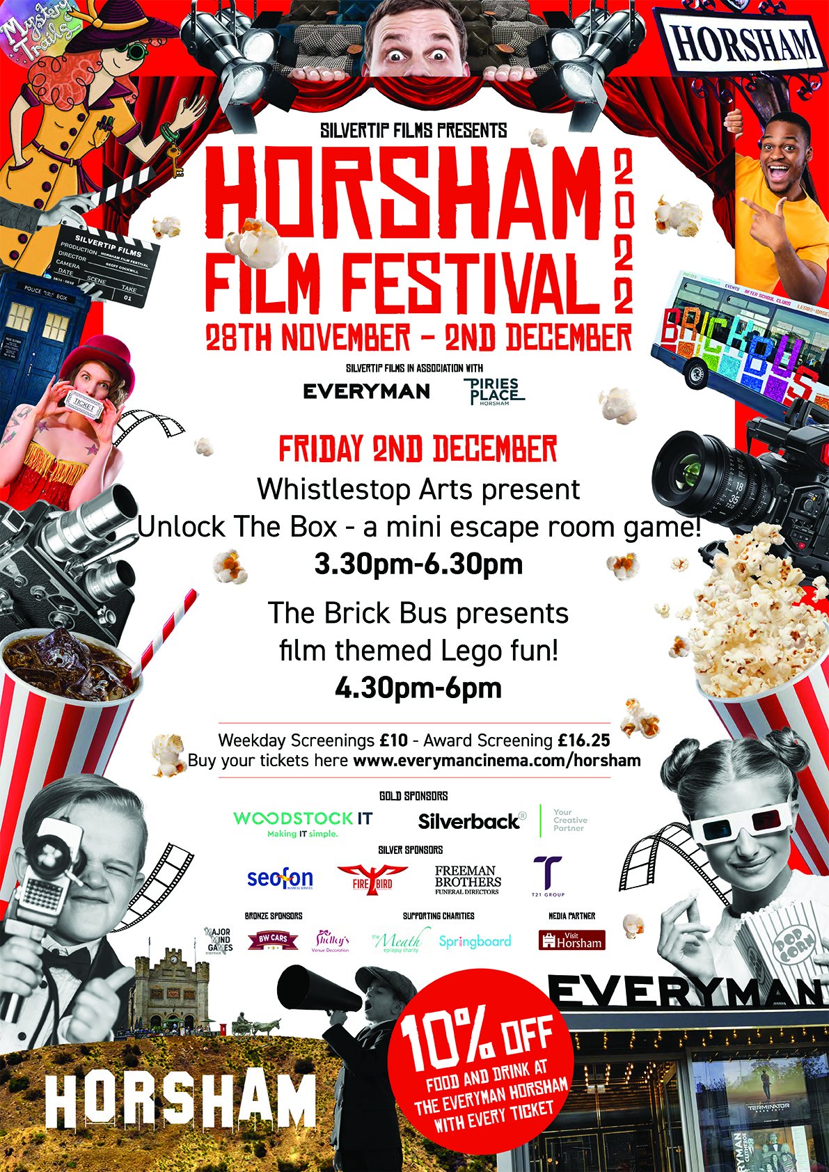 We'll be screening clips from all the shortlisted films and screening the winning film in each category in full! There will be networking with filmmakers and actors, the chance to support local indie film and local businesses and charities plus every ticket carries 10% off food and drink at the Everyman as well and we'll be joined in the afternoon by Whistlestop Arts for mini escape room game fun and Brick Bus for Lego fun!