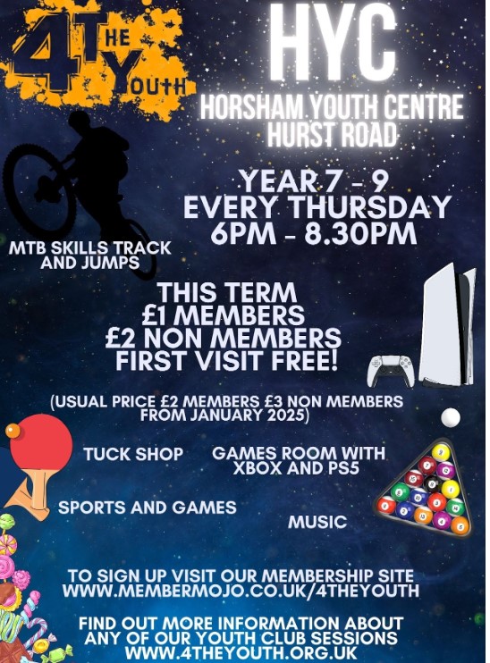 Every Thursday evening for year 7 to year 9 during term time from 6pm - 8.30pm.