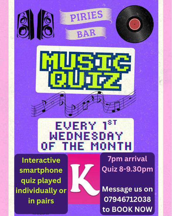 Music Quiz - Play individually or in pairs, prizes and fun