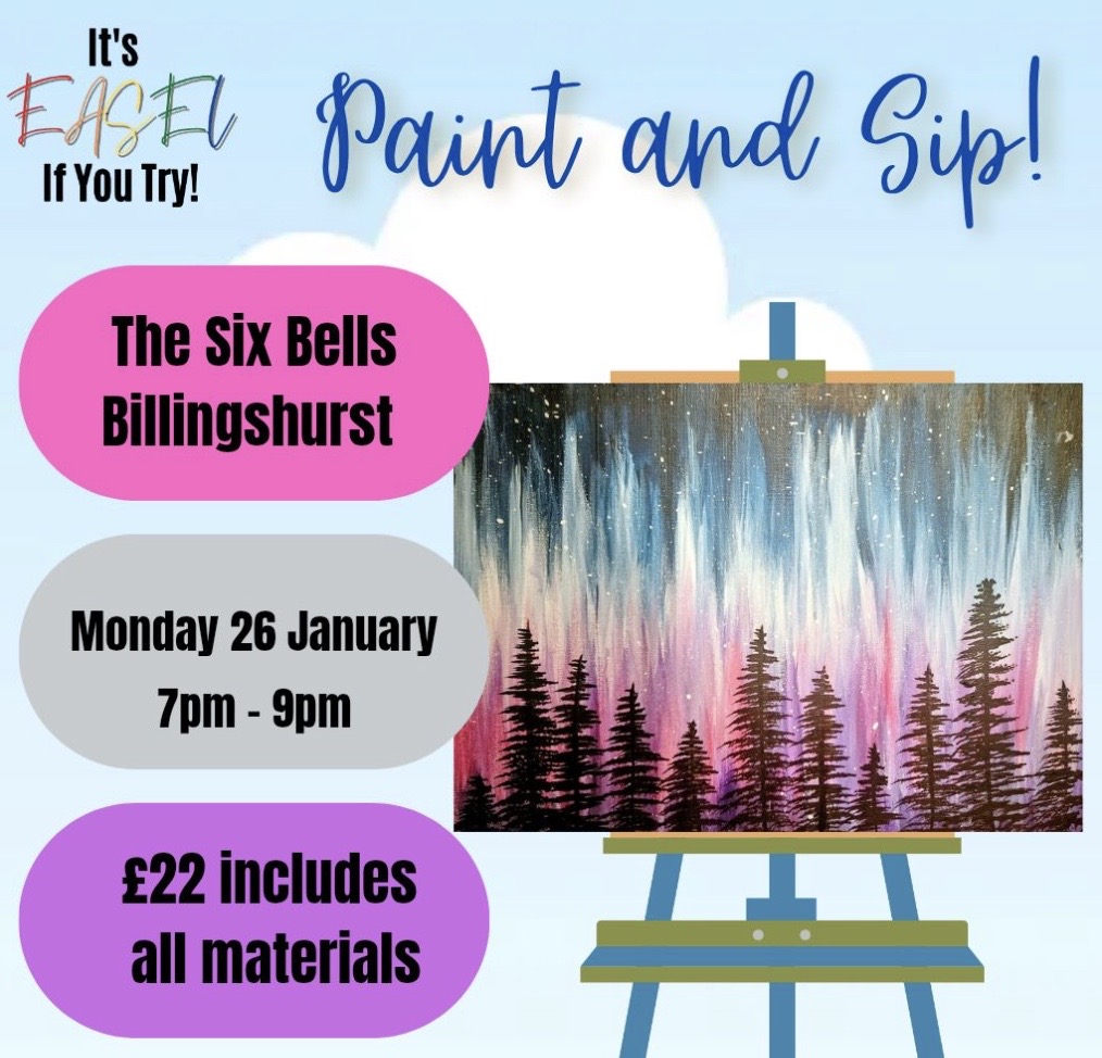 Learn to paint a Northern Lights painting at The Six Bells in Billingshurst on Monday 26 January from 7pm - 9pm