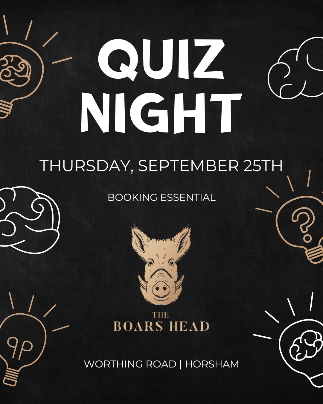 As before, teams of 2-6, £2.50 entry pp. Boars Head vouchers up for grabs, booking essential!