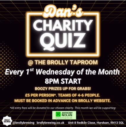 Bring your friends and brain power and help us support some amazing charities each month with Dan's Charity Quiz.