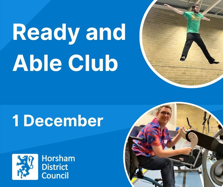 On 1st December, Horsham Wellbeing will be at the Ready & Able Sports Club offering free blood pressure checks and showcasing the support and services we provide to help you live well.