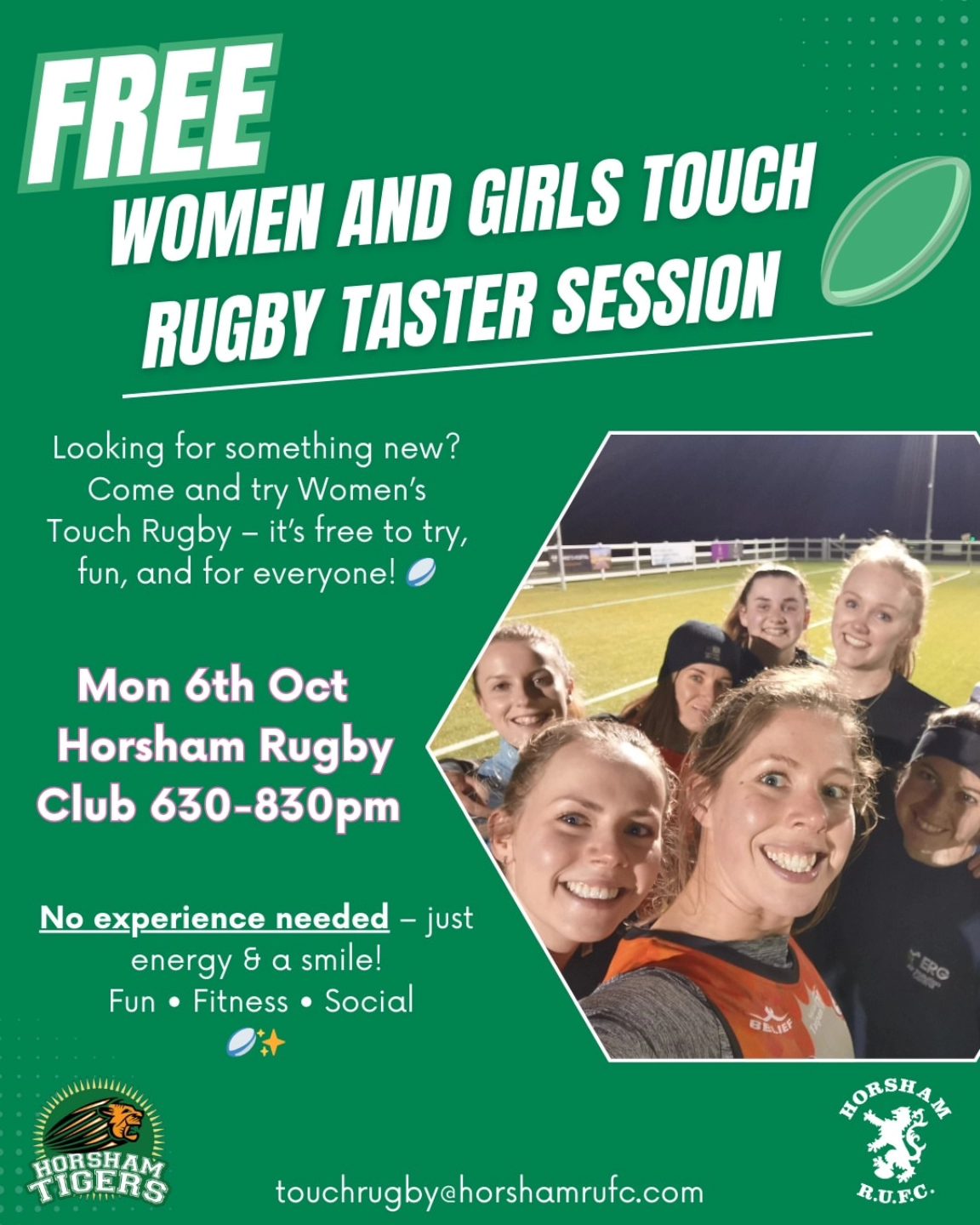Free Touch Rugby taster session, open to all ages and abilities, no experience necessary!