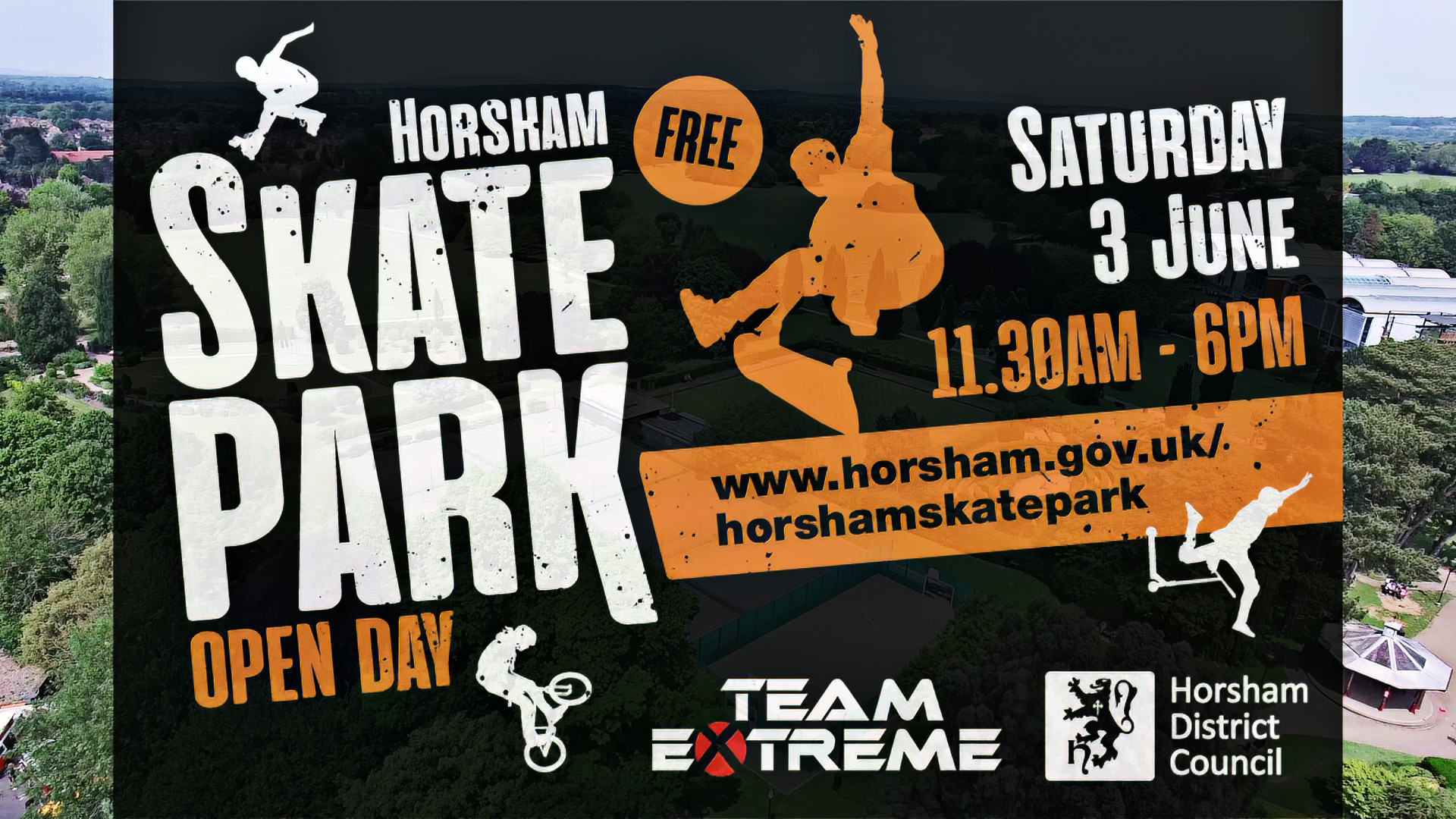 Horsham District Council is working in partnership with professional demo group Team Extreme to create the event which will take place from 11am to 6pm on Saturday 3 June at Horsham Park’s new skatepark.
